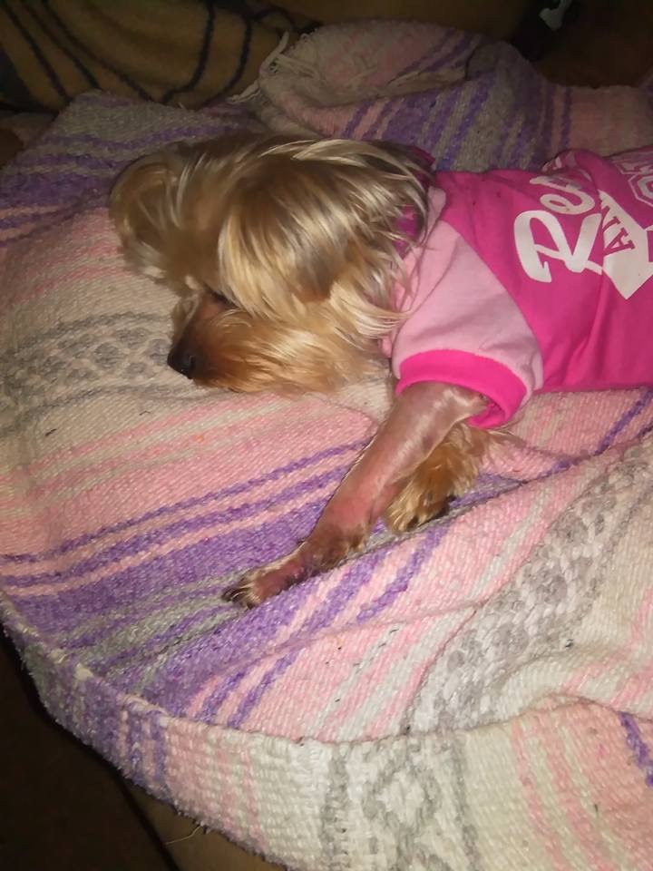 Hi, I’m Karen and I volunteer with a fabulous rescue. Yorkieluvrescue has saved this sweet girl names Trixie from a high kill shelter in Pamona, California.  Trixie’s was surrendered to the shelter on Jan. 19 and spent 4 agonizing weeks there with a very large, infected growth on her front paw. Yorkieluvrescue gave her freedom on Feb. 13th. She was going to come to San Diego and in was to foster this sweet girl who we believe is about 2-3 years old. However once her ride got to the shelter to pick her up and meet me.  It was decided that she needed more immediate help, so she was taken straight to Arizona to meet our amazing Rescue founder, Rene Silva and get urgent help.  She was started on antibiotics and eye drops due to severe dry eye and because the smell coming from this growth was unbearable! She went back to the vet on Mondaynto get prepared for surgery. And on Tuesday Feb 16th, she had surgery to remove the horrible growth.  She was Able to save Trixie’s leg. But it is being watched very close to make sure no more damage was caused by the abuse she has endured. Her initial costs have exceeded $1000, and she is not out of the woods yet.  All funds will be put towards her care. And if there are any leftover funds, they will be put towards our other fosters medical needs that have mounted over the last couple of months.