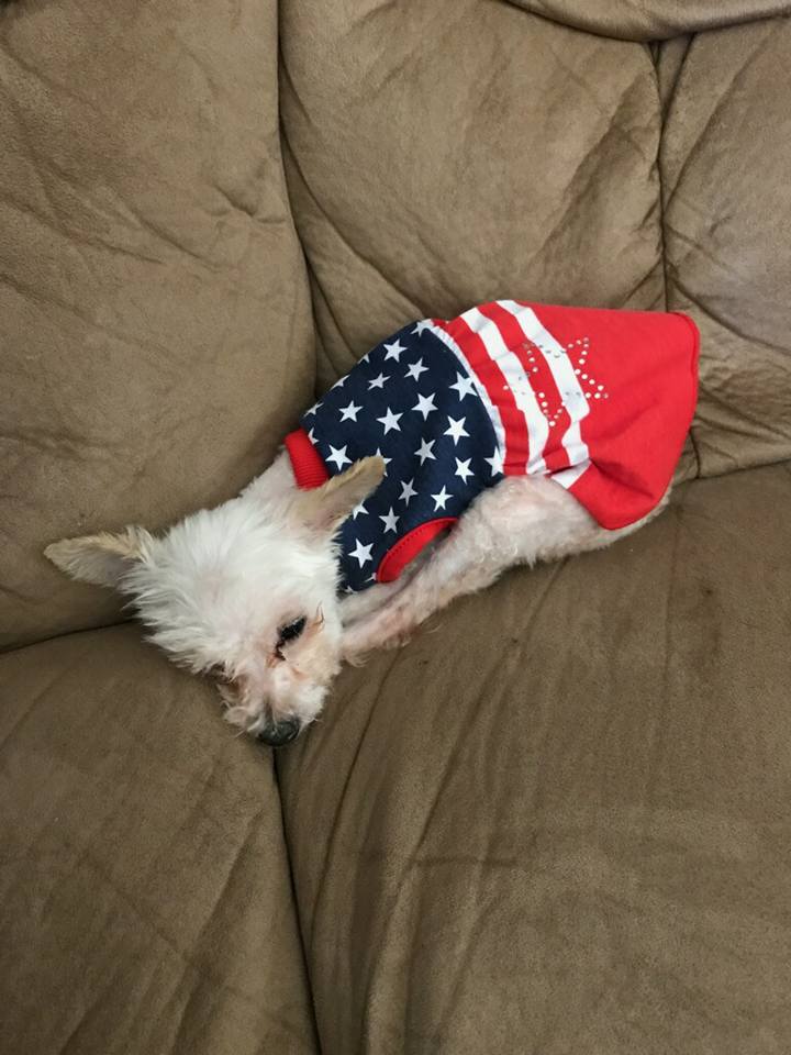 Emma is a darling little girl who somehow ended up at a shelter full of knots, ticks and fleas. She is approx. 9 years old and weighs 4.1 pounds. She is not quite ready for adoption as she is fighting a upper respitiory  infection. Watch for her updates.