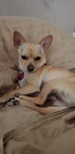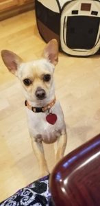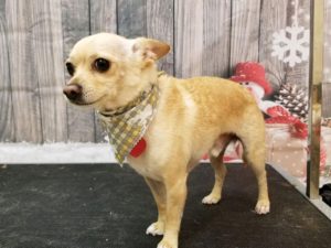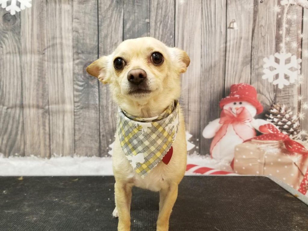 This is Ernie who is one of our Christmas fosters that we rescued from the West Valley Shelter. He is 3 1/2 years old and weighs 10 pounds. He has been doing great in his foster home and gets along with other dogs, but he really needs a quiet home where he is either the only dog or there is another dog his own size. It was originally thought that he was not trusting of men but that is not the case. He is just very timid and will growl and snap out of fear when meeting people. Once he is comfortable with you on his own terms (FYI lots of treats help break the ice) he is very loving and wants to snuggle with you. Because it is hard for him when he meets people, we currently have him on prozac and he will be working with our behaviorist to see if we can eliminate the prozac and help him feel safe around new people. He loves to be outdoors and go on walks and play. He also loves to burrow under a blanket and be left alone. He would make a wonderful companion. He would do best in a home with no children.