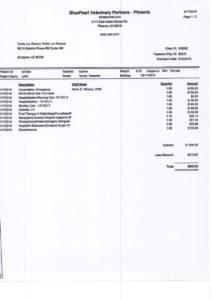 Our volunteers rallied to get her to Phoenix asap. She appears way younger than 13 weeks old and weighs only 1.6 pounds. Our first ER bill is $852.06 – more to come unfortunately as Lydie fights for her life.